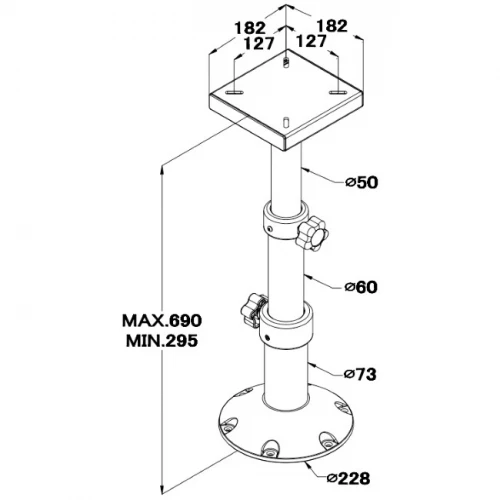 Bordsøyle MI-BSF70 flyttbar - BSF70 anodisert flyttbar bordsøyle med sviveltopp.