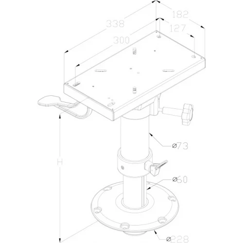 Flyttbar manuell justerbar stolsøyle med glideskinne, høyde fra 300 - 400mm; med vanntett/lukket dørkstett.