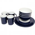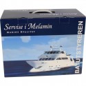 Servise "Navy Blue" i melamin pakket i gaveboks. Det har anti-skli og passer utmerket til båt, bobil, camping og lignende.