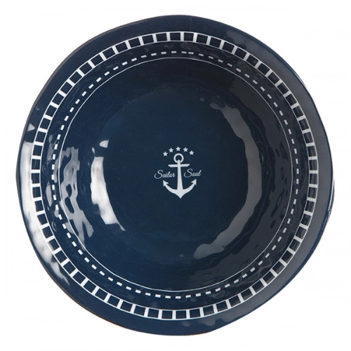 Skål Ø15 mm er en del av det uknuselige melamin-serviset Sailor Soul, som har sett med middagsplater, suppe og dessertplater laget av melamin, dekorert i nautisk stil.