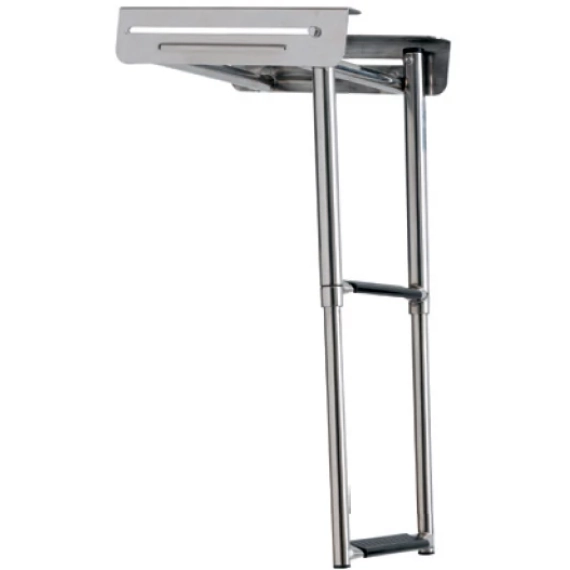Teleskopstige i kassett for montering under baugspyd, eller plattform.