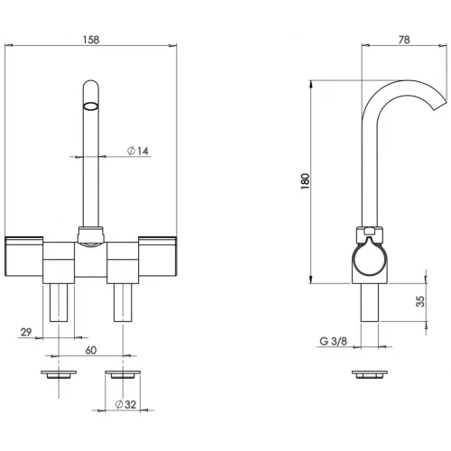 Tuten kan både senkes og svinges. "Lux" armaturene har 14 mm tut. Høyde over benk med utløpsrør er nedslått 45 mm.