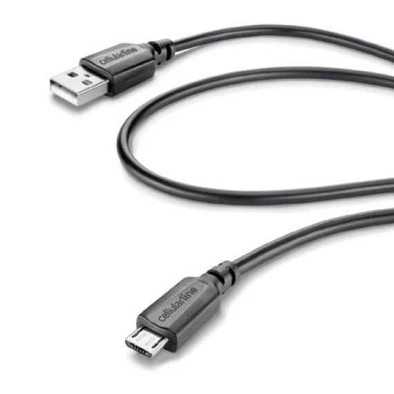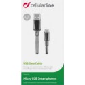 USB til Micro USB kabel fra Cellularline. For smarttelefoner og nettbrett med micro USB tilkobling. Synkronisering av data og lading.