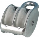 Dobbel blokk i aluminium med nylonhjul.
