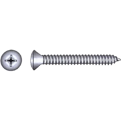 Plateskrue DIN 7983 i syrefast stål med linsesenkehode og krysspor.