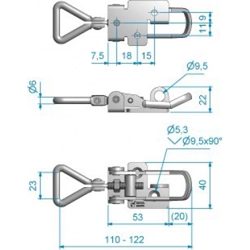 Totallengde 115-125 mm. Leveres uten låsebeslag, se Tilbehør.