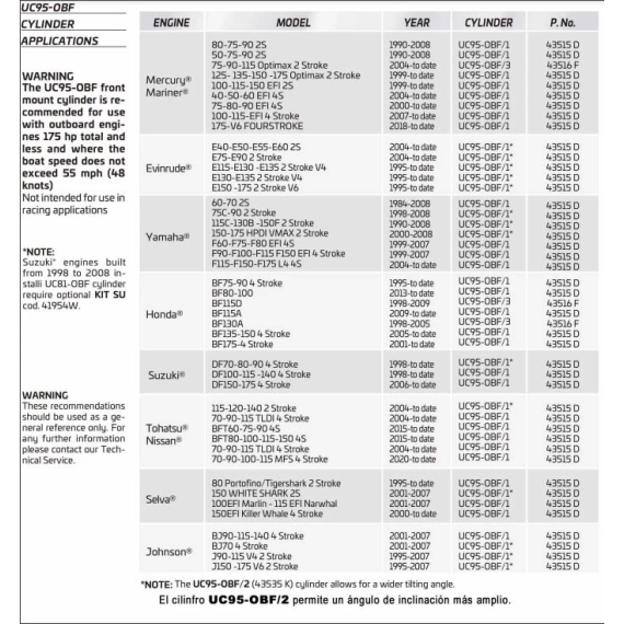 Balansert sylinder for utenbordsmotor inntil 175 HK. Leveres med 3 forskjellige lenkearmer.