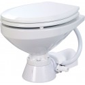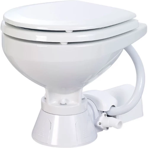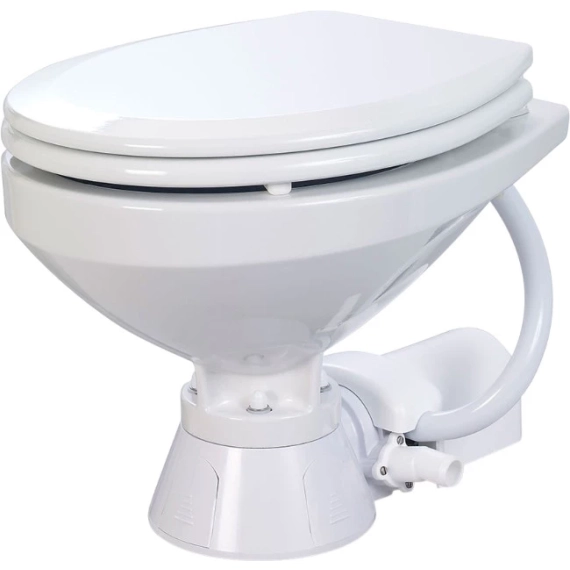 Elektrisk toalett fra Jabsco er et selvskrevent standardutstyr i mange kvalitetsbåter. Her får du et svært driftsikkert toalett, som holder i år etter år. Toalettet har elektrisk drevet impellerpumpe, som er svært enkel i bruk.Toalettet pumper og kverner avfallet, og gjør det lettere å tømme septiktanken. Husk å bruke lett oppløselig toalettpapir, og å ikke kaste annet i toalettet enn det som naturlig hører hjemme der.