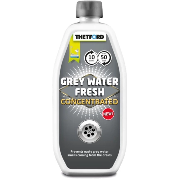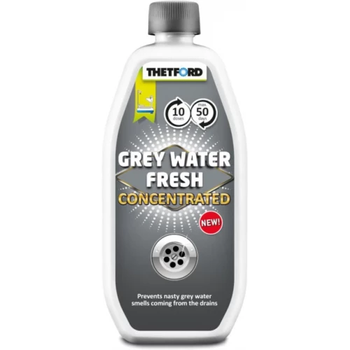 Grey Water Fresh konsentrat for daglig bruk. Svært effektiv for vedlikehold av gråvannstank og avløpsrør. Reduserer bunnfall samt øvrige fettavleiringer og gjør tanken lettere å tømme. Med Grey Water Fresh er det slutt på ubehagelig og vond lukt fra gråvannstank og avløp.