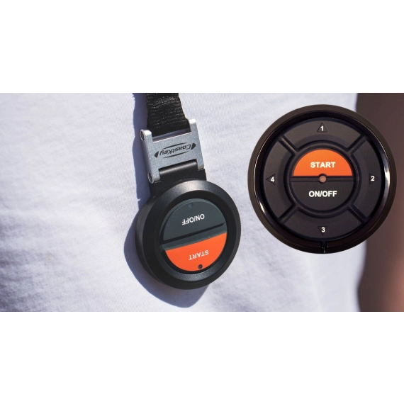 Ved å ha FOB’en på seg til enhver tid er båtfører sikret med et av markedets beste systemer for trådløs «dødmann» som sørger for at båten stopper dersom man skulle falle overbord.