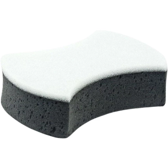 Den har en grov og fin side som lar deg tilpasse svampen etter behov. Den skader ikke gelcoat eller lakk. Praktisk form som gir et godt grep.