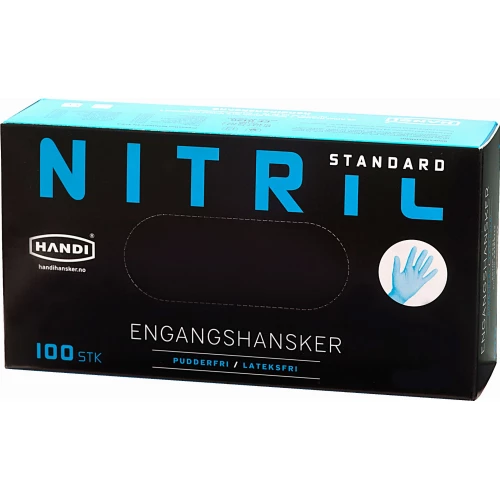 Handi engangshansker i Nitrile. Pudderfri, inneholder ikke latexproteiner.