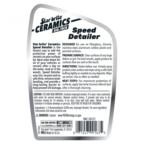 Med Star brite Ceramic Speed Detailer kan du raskt og enkelt beskytte og opprettholde overflatene på båter, kjøretøy og utstyr, samtidig som det gjør rengjøring enklere og mer effektivt.
