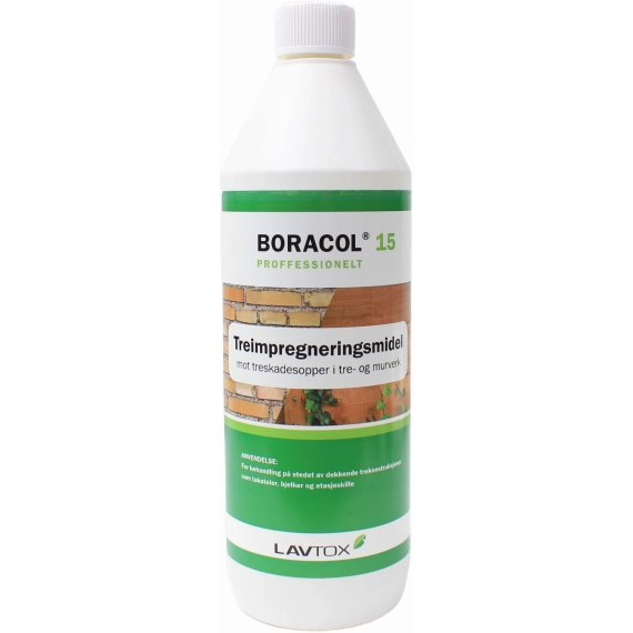 Boracol 15 er et svært effektivt impregneringsmiddel som benyttes for å forebygge og bekjempe sopp og insektangrep. Benyttes på treverk og mur (fasader, kjellere, vaskerom etc.) til bekjempelse av råtesopp, muggsopp, ekte hussopp og insektangrep.