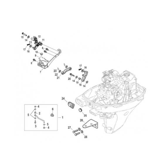 Originalt monteringssett for Mercury 10/15/20. Fra styrekult til fjernstyring.