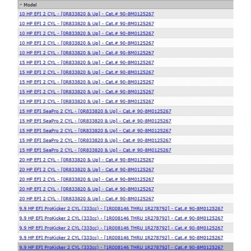 - Passer til Mercury F9.9/10/15/20 EFI 4-takt modeller fra serienummer 0R833820 og opp