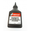 - Mercury Powertrim & Steering Fluid er en hydraulikkolje for power trim/tilt som er blank/klar i fargen.