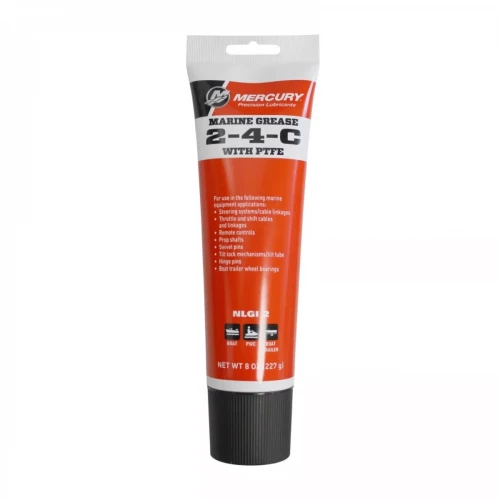Mercury 2–4-C Marinefett med PTFE/teflon er et ekstremt allsidig litiumbasert NLGI 2-fett av høy kvalitet som ikke brytes ned når det blandes med vann.