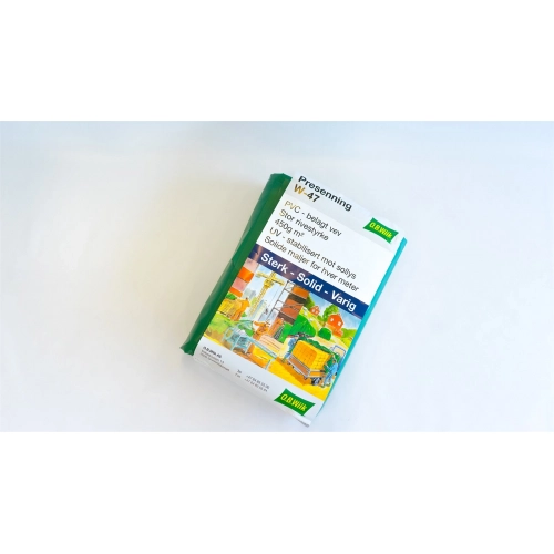 Beskrivelse: Presenninger i PVC benyttes til overdekking når det settes krav til styrke og levetid. Materialet som presenningene er laget av består av en stabil polyester vev belagt med PVC på begge sider. Presenningene leveres med sveisede maljer pr. meter