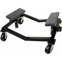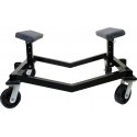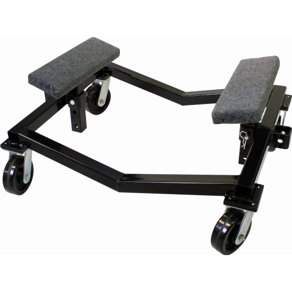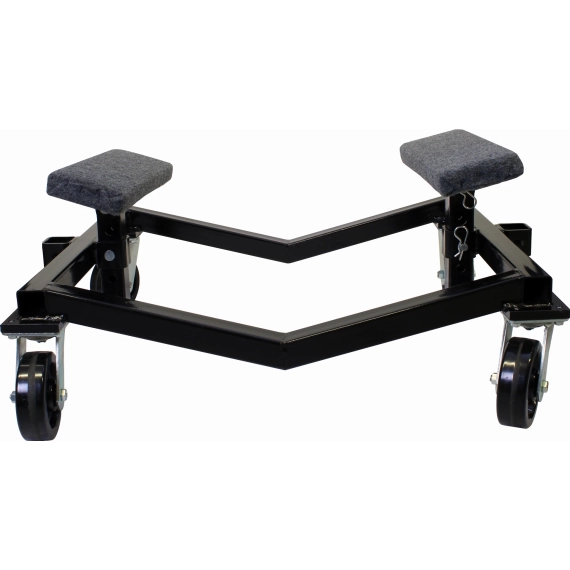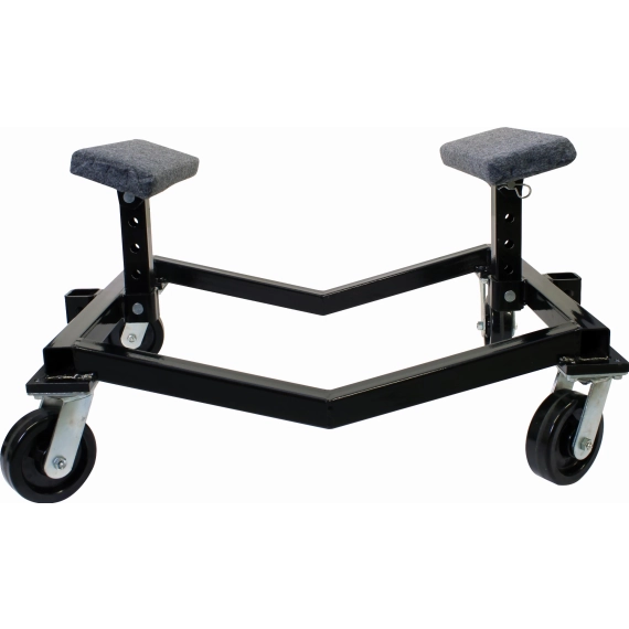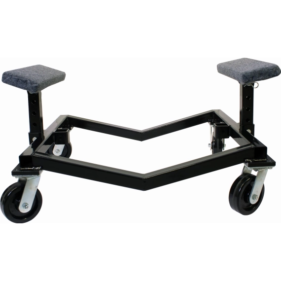 Båttralle i sortlakkert stål med teppebelagt støtte. Justerbar høyde på støtter i 4-posisjoner.