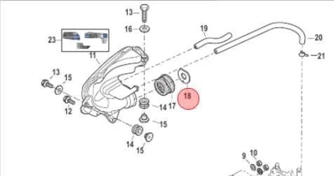 – Plastikkdekselet må da tas av, platen (restriktor) sitter på innsiden av enden til innsug (se nr. 18 på bildet under). Monter alt på plass igjen, så er du ferdig.