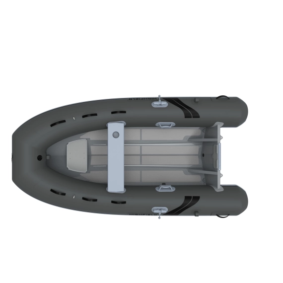 Highfield 290 Ultralite er laget av 2,5 mm tykt pulverlakkert marinealuminium for skroget og 1100 Dtex duk på oppblåsbar pontong.