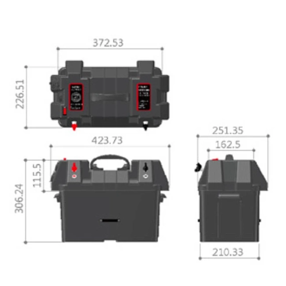- Maksmål for batteri: 33,7 x 20 x 20,5 cm (L x B x H)