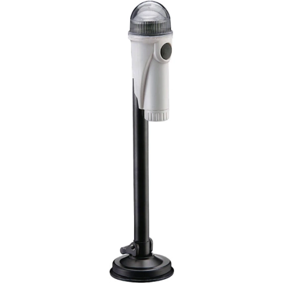 Rundtlysende batterilanterne LED i plast. Lanternen festes ved hjelp av en kraftig sugekopp.
