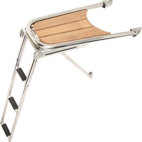 Ekslusivt baugspyd laget av stål og teak tre til seilbåt med 3 trinns stige som kan trekkes inn under baugspydet.