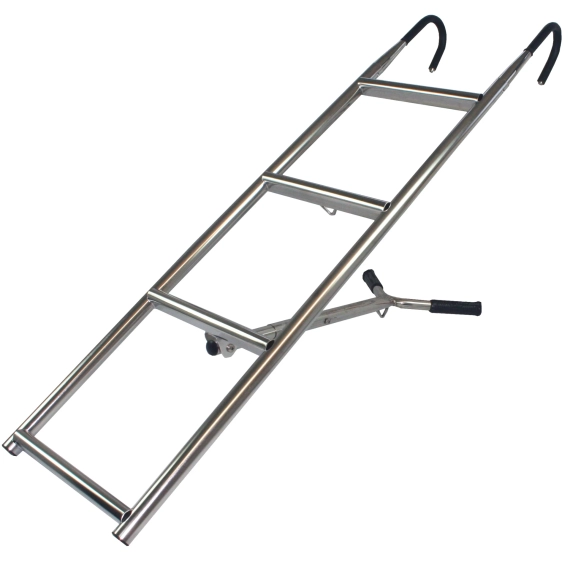 Utfellbar baugstige i syrefast stål. Ikke for fastmontering, hektes over rekken ved bruk.