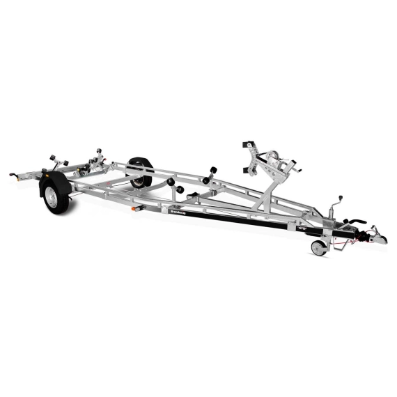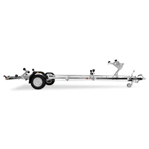 Bremset tilhenger for båter opp til 22”. Utstyrt med V-formet sveiset, forsterket understell og utmerkede kjøreegenskaper. Premium kvalitetsruller som er skånsomme for båtens skrog. Tippbar bakre rullevugge i høy kvalitet, forsterkede kjølruller og doble sideroller som enkelt tilpasses din båt. Varmgalvanisert understell sikrer din tilhenger lang holdbarhet og stabilitet. De elektriske ledningene ligger helt skjult og godt beskyttet inne i understellet. Vanntette hjullagre forlenger levetiden. Vinsj og vinsjtårn kan reguleres med enkle grep og tilpasses din båt. Lett avtagbar lysrampe med enkel utløsningsmekanisme gjør det lett å laste båten og sjøsette den. Bildene er kun tiltenkt illustrasjon og kan vise valgfritt utstyr.