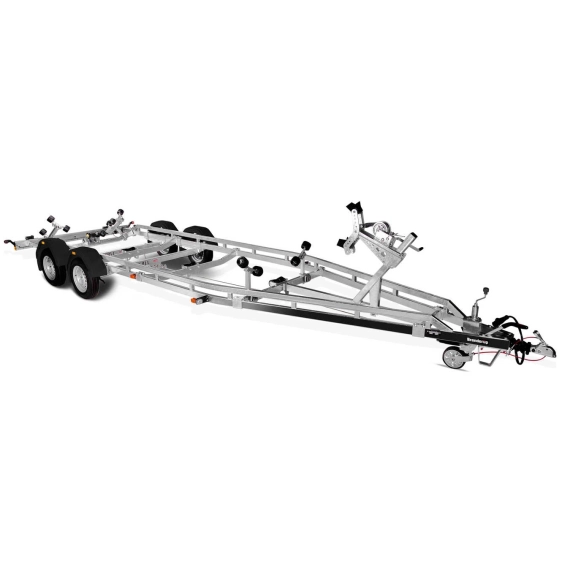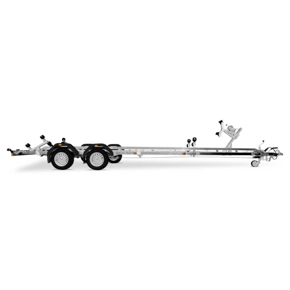 Utstyrt med V-formet sveiset, forsterket understell og utmerkede kjøreegenskaper. Premium kvalitetsruller som er skånsomme for båtens skrog. Tippbar bakre rullevugge i høy kvalitet, forsterkede kjølruller og doble sideroller som enkelt tilpasses din båt. Varmgalvanisert understell sikrer din tilhenger lang holdbarhet og stabilitet. De elektriske ledningene ligger helt skjult og godt beskyttet inne i understellet. Vanntette hjullagre forlenger levetiden. Vinsj og vinsjtårn kan reguleres med enkle grep og tilpasses din båt. Lett avtagbar lysrampe med enkel utløsningsmekanisme gjør det lett å laste båten og sjøsette den. Bildene er kun tiltenkt illustrasjon og kan vise valgfritt utstyr.