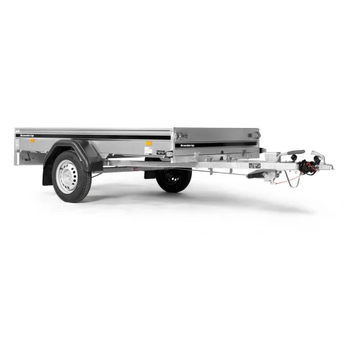 Med sitt store kassemål er hengeren perfekt til frakt av byggplater. Hengeren leveres med tipp for frakt av plenklippere og andre små maskiner. Bildene er kun illustrative og kan vise tilleggsutstyr.