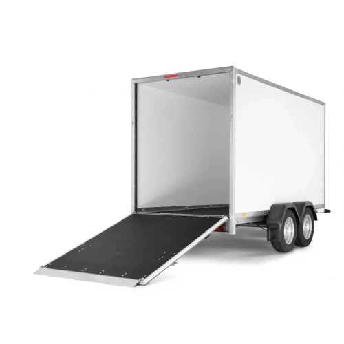 Tilhengere fra Cargo Dynamic™-serien er utviklet for profesjonelle brukere og elektriske biler som ønsker en lett tilhenger som kan dekke og beskytte varene sine. Tilhengeren har høy lastekapasitet. Utformingen av tilhengeren gir mulighet for full profilering på alle sider av tilhengeren, så man kan utnytte tilhengerens fulle annonsepotensial. Laget av et moderne lettvekts, ikke-økologisk og vanntett bikubemateriale som er motstandsdyktig mot støt. CargoDynamic™ er en svært fleksibel tilhenger som kommer i en rekke størrelser tilgjengelig med enten dører eller rampe. Bildene er kun ment som illustrasjon og kan vise tilleggsutstyr.