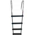 Bryggetrapp i syrefast stål med 4 sorte plasttrinn. Trappen festes med 4 skruer og kan demonteres.