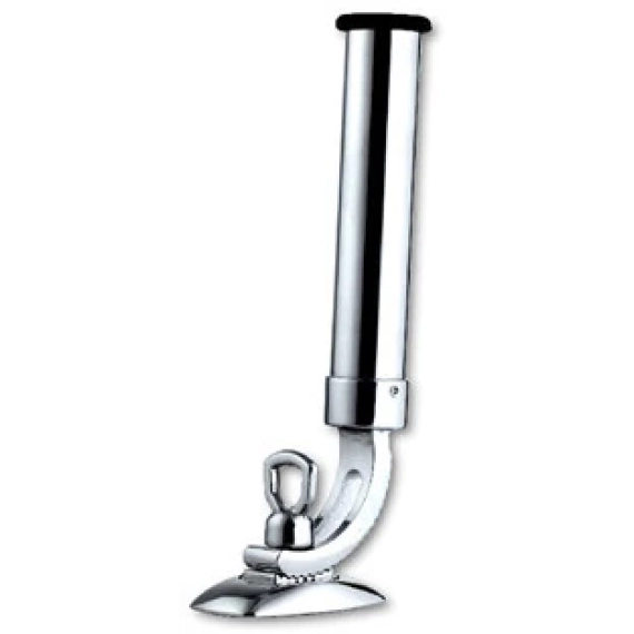 Justerbar fiskestangholder i forkrommet messing. En monteringsplate under foten skjuler de fire skruehullene.