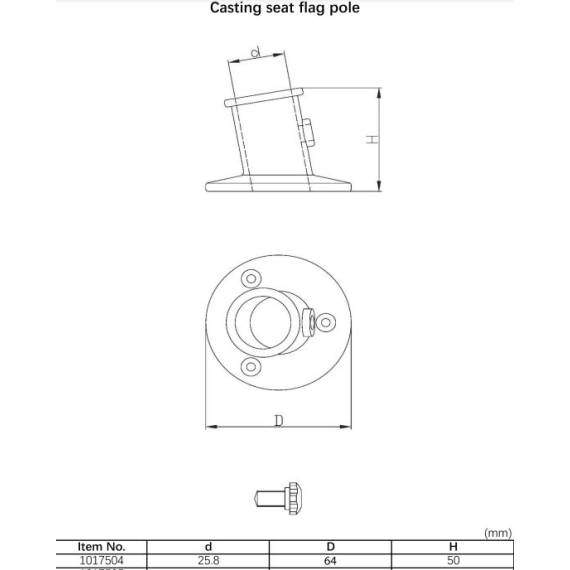 Flaggstangholder i forkrommet messing. Leveres med settskrue.