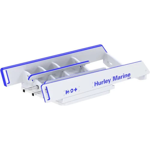 Dette avanserte systemet består av en roterbar krybbe og et stag med vinsj, som opererer på samme måte som vanlige båthengere. Med Hurley H3O+ kan du enkelt vinsje båten opp på badeplattformen og lagre den trygt og stabilt mens du er underveis. Staget med vinsjen kan fjernes når det ikke er i bruk, og etter at lettbåten er sjøsatt, kan krybben også enkelt fjernes fra badeplattformen.