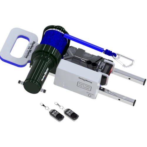 Hurley H3O+ er det mest avanserte davitsystemet fra Hurley, og det er en utmerket løsning for tyngre lettbåter og vannscootere med en vekt på opptil cirka 328 kg. Systemet er allsidig og fungerer både på badeplattformen på båten og på lavere brygger. Du kan velge mellom manuell vinsj og elektrisk vinsj med batteri og fjernkontroll.