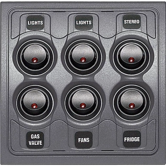 12V bryterpanel av høy kvalitet med 6 av/på brytere.