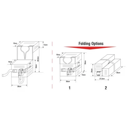 - Mål pakket: 30 x 15 x 36 cm eller 24 x 27,5 x 30 cm (avhengig av hvordan du bretter)