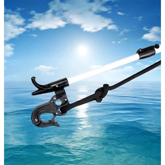 Fortøyning løses ut igjen med båtshaken. Sterkt og lett teleskopisk rør laget av glassfiber.