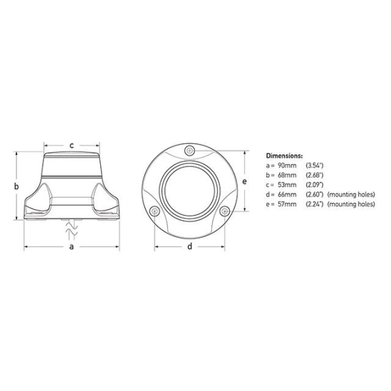 RINA-godkjent vanntett rundtlysende ankerlanterne. Hus og glass av slagfast UV-bestandig materiale.