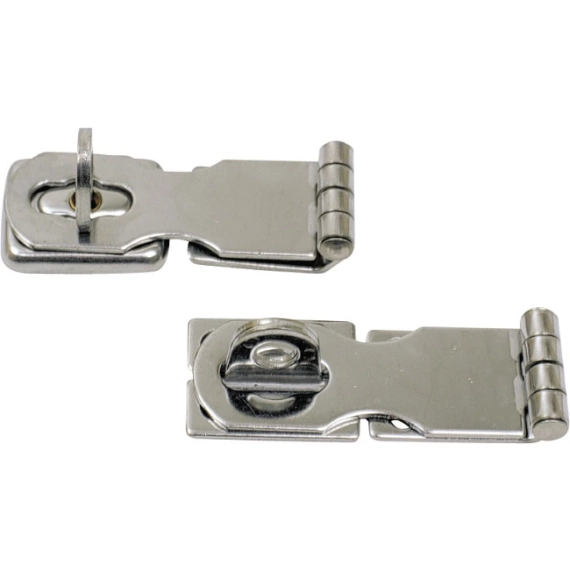 Hengelåsbeslag i syrefast stål. Leveres med motstykke som har vridbar svivel.