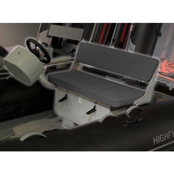 • Dobbel sofa/sete med nedfellbar seterygg & integrert brakett/holder for ratt og kontrolllboks (gir/gass). Perfekt konsolløsning for Highfield Classic serien.