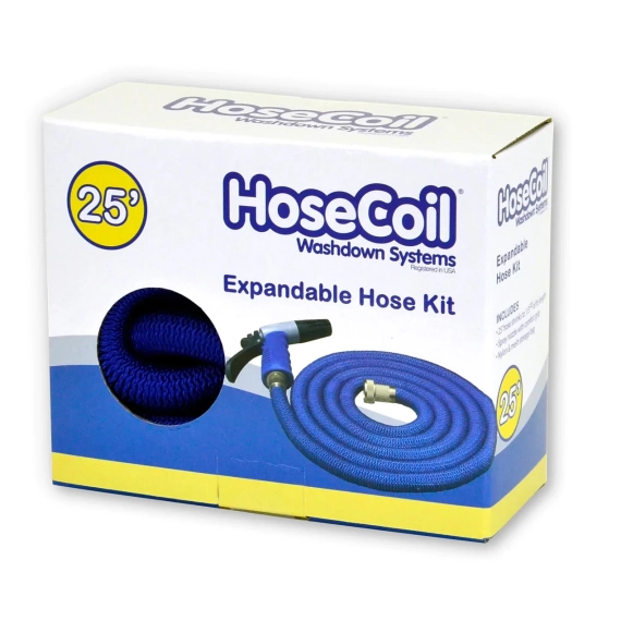 Hosecoils smarte spyleslange er svært kompakt, og blir tre ganger så lang når du setter vanntrykk på den.