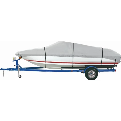 Formsydd båtpresenning av høy kvalitet som er produsert i vannavvisende grå 300 denier polyester slik at den er robust og tåler nordisk klima. Elastiske stropper er sydd inn for å gi best mulig passform.Finnes i forskjellige modeller, denne er 610 til 670 cm lengde, med 254 cm bredde.