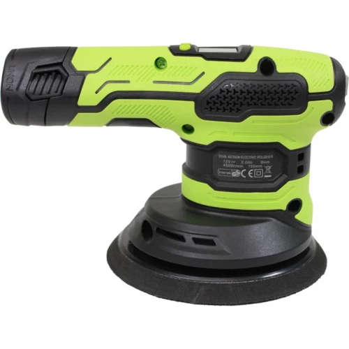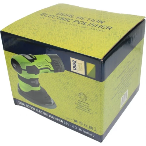 1852 Poleringsmaskin med 12V batteri gjør det mulig å polere uten tilgang på 220V strøm. Du slipper også den irriterende ledningen, som alltid er i veien. Poleringsmaskinen er 6 mm oscillerende, og gir et svært godt resultat. Den har LED-display, og justerbar hastighet på 2000-4500 omdreininger. Den leveres med to batterier og lader.