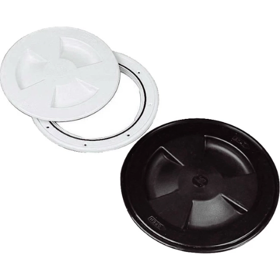 Inspeksjonsluke i plast med gummipakning.
