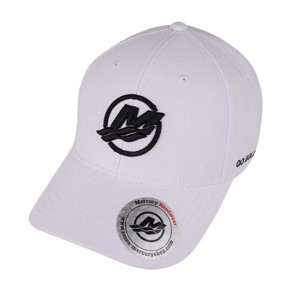 Mercury-logoen trones som et 3D-broderi foran, Go Boldly-logoen er trykt på siden, og størrelsen på hetten kan justeres med en metalllås preget med Mercury-logoen.